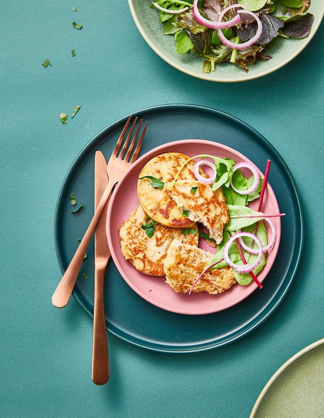 Pour un repas complet, accompagnez ces pancakes d’une salade verte ou de légumes.